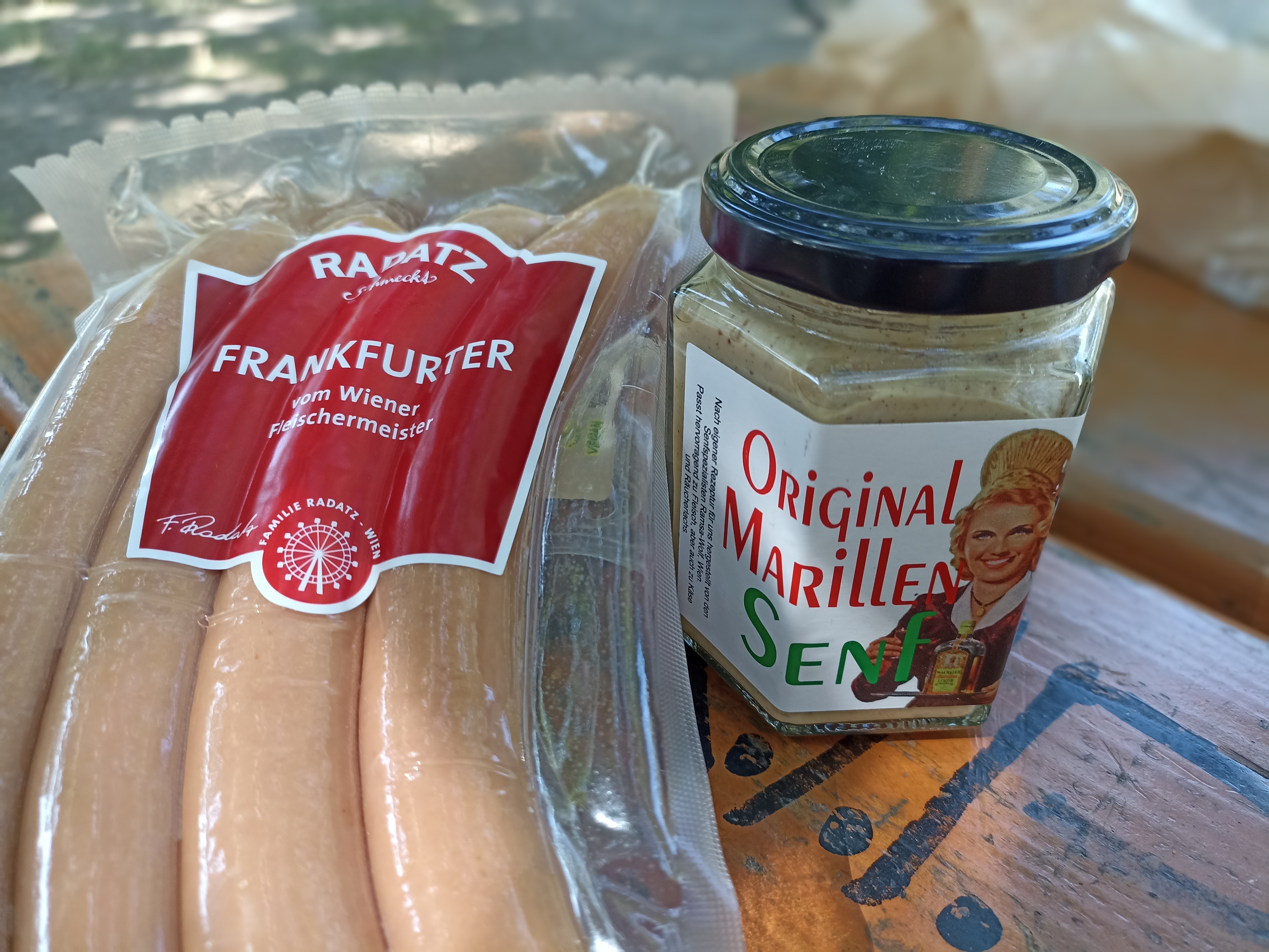 Takže zatímco děti si hrály, já si v klidu snědl svou část oběda. Mělo to být jedno z gastronomických vyvrcholení cesty: vídeňský párek s kremžskou hořčicí. Ale protože vídeňský párek se ve Vídni nedá sehnat byl to frankfurtský párek vyrobený vídeňským řezníkem s