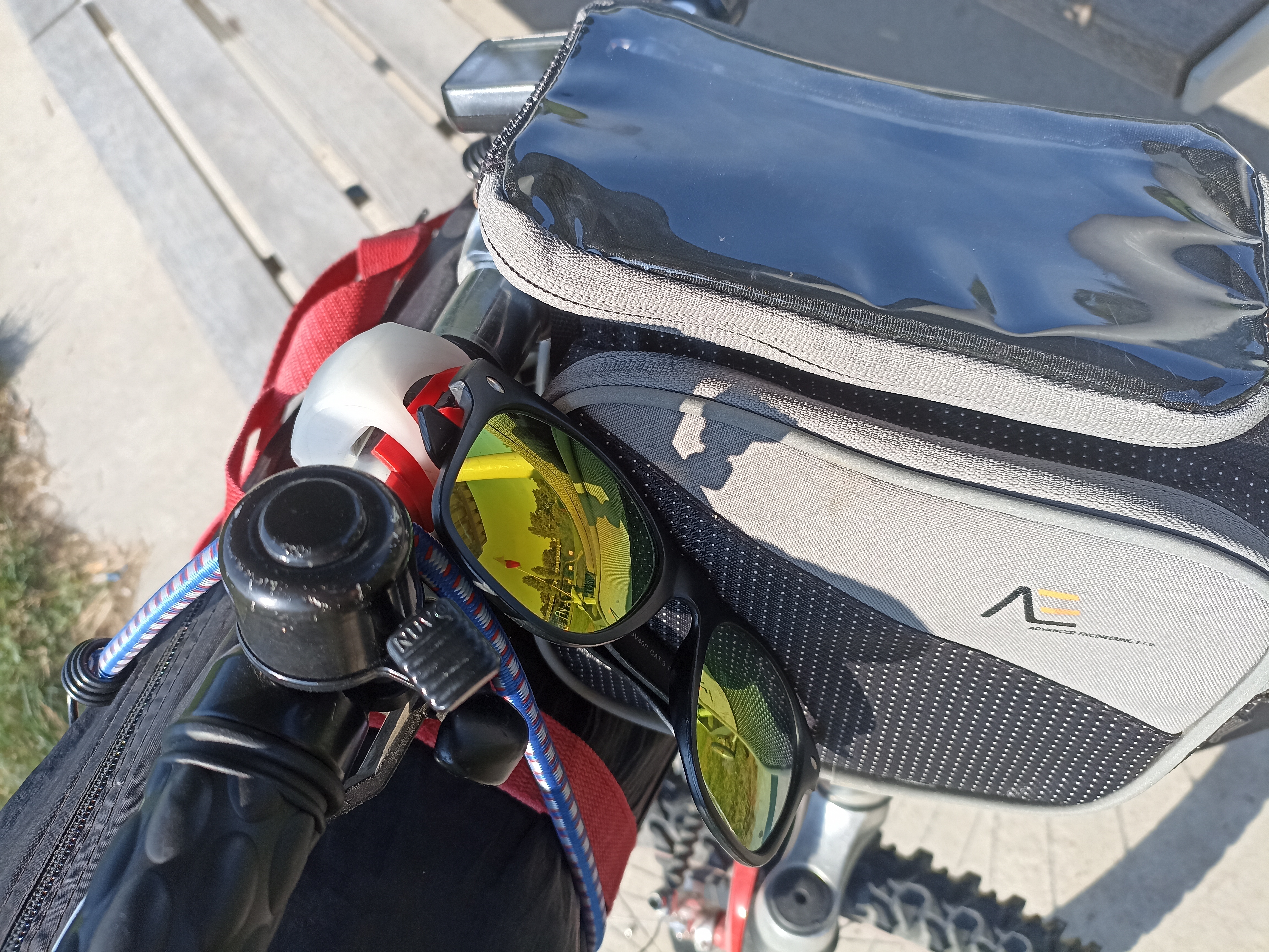 Bylo doplněno o brašničku s obalem na mobil. To, že brašnička na můj představec nepasuje, vyřešila izolace topenářských trubek. Za brašničku, stejně tak za držák na brýle, který byl vytištěn na 3D tiskárně, děkujeme společnosti Advanced Engineering s.r.o. Ta nám darovala i powerbanku díky níž jsme dosud nemuseli hledat elektrickou zásuvku. Pokud při objednávce služeb v rozsahu alespoň jednoho týdne uvedete při komunikaci s obchodním oddělením kód POCESTNÝ, dostanete 500 Kč slevu, doufám.