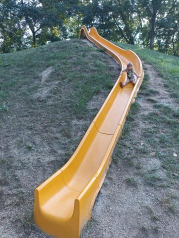 Na něm byla největší atrakcí pro obě děti asi 10 metrů dlouhá skluzavka, což je zde vlastně standard. Každé větší hřiště nějakou takovou má.