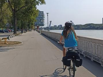 Dalšími kilometry jsme se dostali do Bratislavy a pokračovali podél Dunaje. Vzdálili jsme se od něj jen v místech, kde cyklostezka obchází botanickou zahradu nikoliv po břehu, ale stoupáním a následným klesáním, aby se vyhnula nesmyslnému zákazu vjezdu.