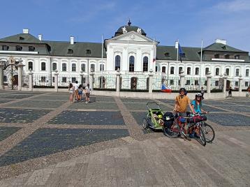 Vyfotili jsme se u Pellegriniho paláce, kde k mému překvapení stále ještě vlaje vlajka Evropské unie. Přecijen týden jsem nesledoval zprávy a obracení Slovenska asi pokračuje pomaleji, než jsem myslel.