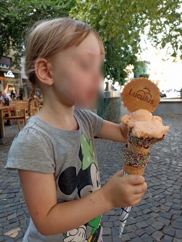Po obědě nám Pocestná v Bille koupila zmrzlinu. Ale omylem vzala sadu 12 mini kornoutových zmrzlin. Výhoda byla ta, že jsme každý kromě Mikuláše měli po obědě 3-5 zmrzlin. Nevýhodou, že Pocestná prohlásila, že tím máme zmrzlinu vybranou na dalších 3-5 dní.
